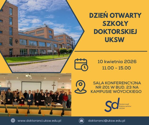 ADRES:ul. Wóycickiego 1/3, bud. 2301-938 Warszawawnhs@uksw.edu.plKIEROWNIK DZIEKANATUSEKRETARIAT DZIEKANAPOSTĘPOWANIA DOKTORSKIEpok. 223tel. 22 5696849 w. 849pon.- pt. godz. 8.00-15.00 NAPISZ DO NAS